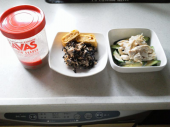 ・゜☆.。.:*・゜☆.。.:*・゜☆.。.:*・゜☆・゜☆.。.:*・゜☆.。.:*・゜☆☆.。.:*・゜☆ 08:25 紅茶+ショウガ 09:00 プロテイン100cc、 ひじきのツナ和え、 玉子焼き2切、 チキンサラダ 09:25 コーヒー 10:20 サプリ、 青汁 10:50 グリコ健康ヨーグルト 15:00 まかない 22:00 唐揚2個 ← この時間帯の唐揚はお店の売れ残りなんです。つい・・・。(^^; 23:15 エビス350缶 24:00 白ワイン、 トマトの卵とじ(出来立てのあったかいver.)