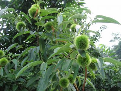 栗の花(細長く白色)も落ち棘のある実が大きくなってきました。