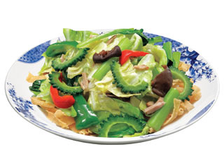 【晩ごはん576カロリー】くらげサラダ100カロリー、ゴーヤチャンプ250カロリー、焼酎20cc226カロリー