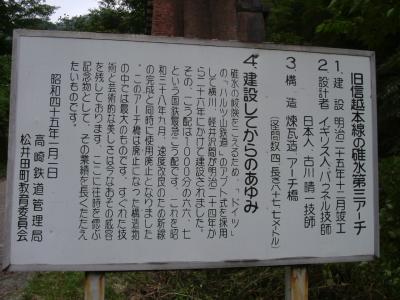 画像1=碓井第3橋梁(めがね橋)4連アーチ式鉄道橋の終点で、めがね橋の上は歩くことができます。アプト式線路跡は遊歩道アプトの道です。