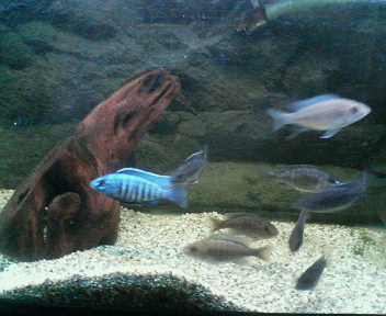 おお、マラウィ湖系のシクリッドですね。 私も一時凝って飼ってました。 メタリックな輝きが不思議な気分にさせてくれました。 あの浮遊感が癒してくれますね。 老後にまた飼いたいな。