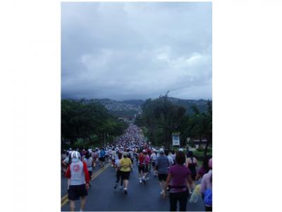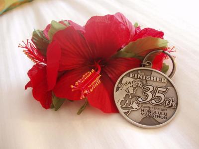 完走おめでとう! 悪天候で少し寒かったと聞きましたが、気持ちよく走れてよかったですね♪ 私も、出場しようと練習していた時期があるのですが、半月板を傷めて断念しました。 だから、ホノルルマラソンと聞くと、気になってお邪魔してしまいました。 一緒に練習していた友達から、完走した感動話を聞くだけですが、伝わりますよ。私も、ゴールで感動の涙、流したかったなぁ~。笑。