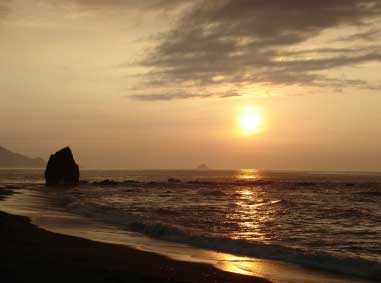 冬の日本海も眺めがいいし、時々、海岸で休憩をすると