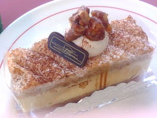 @おまけ画像 ■本日のおやつ(15:30) あまりにも暇なのでとうとう「おでかけスイーツ」(いいのか?) 徒歩数十秒のところに全国的に有名なパンケーキ職人直営店があるんだもの。 マスカルポーネムースとミルクチョコのケーキ(withブレンドコーヒー)をベーカリーでイートイン。 しかも別に新しいカフェテラスがオープンしたばかりなんだって。 おおランチにぴったり! メニューを見ただけで垂涎もの。。。お弁当の危機です(汗)