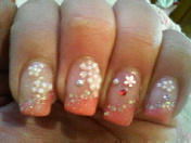 斜めに色を入れて、境目にラメ☆ お花のシールで飾って貰い・・・気分は「春色乙女」イエイ~♪ (★^▽^)V
