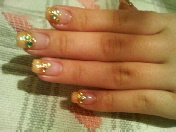 2枚目の画像は娘①のネイルです☆ 爪先ゴールドでストーンをちりばめてます☆