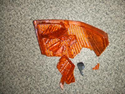 「わし」さーん、お早うございます。 本当に、笑っちゃうのですが、昨日まず駐車場で車を確認。 欠片がない???どこ行った?と雨の中。不思議に思いなが らアパートの玄関先まで、いつものようにたどり着くと。 ん????こっこれは。もしや! そう割れた欠片は、玄関先にお届け?(ピザ屋かい?)され ておりました。なんだか面白くないですか???笑っちゃっ た。(@_@;) T-X最強だから、ぜひ。よろしくです。(^_-)-☆ 懲らしめておしまいなさい(黄門さま風)