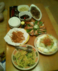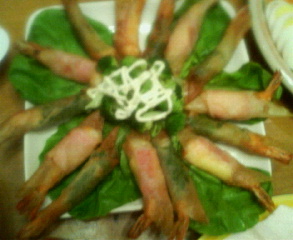 昨夜の夕食(次女友一名・お泊り保育→高②) 海老の春巻き…大葉が苦手な女子高生用に 海老&ベーコン&カマンベールチーズを巻いて出したら 好評でした♪