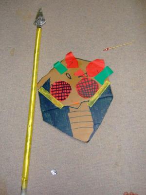 いや~昨日のプールの時に日焼け止め塗るの忘れてて、 サウンドの肩に掛かる錘で、日焼けの肩が痛くて痛くて、、、 泣きそうでした(これもうそw) でも、ホンとに痛くてチト辛かったです(T^T) ジムのフロで(昨日は入らなかった)肩を見ると真っ赤です。 そりゃ痛いはずですっ! ----- 写真の矛と盾(らしい)は、今日のボーイスカウトの イベントの成果らしいですw 今日は、花火もしました。( ̄◇ ̄)ゞ