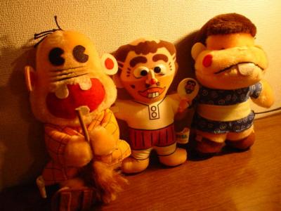 【今日の感想】 写真はUFOキャッチャーでとった、わたしの可愛い戦利品。 真ん中は、衣装は同じだけれどパパじゃなくて変なおじさん。