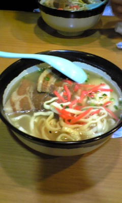 500円の沖縄そばに、ドカ~ンと、三枚肉が2枚。 あのさぁ、パピ君、紅ショウガもうちょっとキレイに乗っけてくんな~ぃ...(-゛-メ)。 写メがぁ~...。