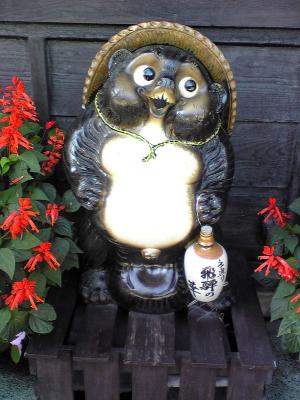 日中は、まだまだすんごく暑い日があるので、ラムネもまだ売ってるんです♪。 散歩の途中で見つけたタヌキ、思わず笑ってしまいました。 この信楽焼きのタヌキって、男の子と女の子があるんですよね。