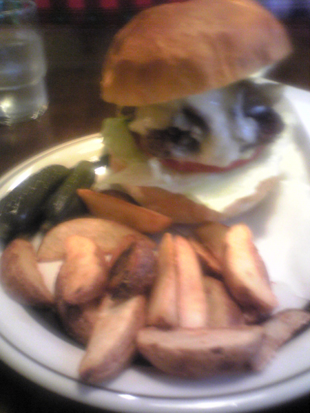 すんごく美味しかったら、お店の画像・名前を書こうと思いましたが・・・普通でした。 バンズと中に挟んであるキノコのクランベはおいしかったのですが、肝心のビーフパテが味もそっけもないものでした。 このハンバーガーのカロリー分を必死で帰りに歩きました♪♪♪。