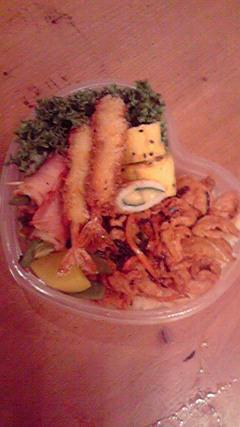 このハートのお弁当はステージの雰囲気そのままだねー(●^o^●) 名づけて主役も脇役もお弁当の中では押しくら饅頭押されて泣くなァ~~泣く子はいねが~おらが食べちゃうどー!!! あ・・・今日超ねぼーで 旦那も息子も娘も弁当なしでした~~~~~~~明日はこのお弁当レッスンしよ~(起きれたら)