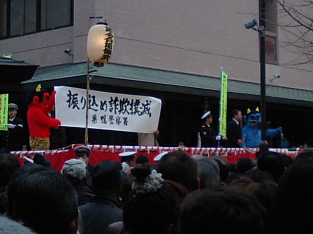節分。 歯科受診の後、友人と巣鴨の節分に行く。 境内は老若善男善女…いや、老壮善男善女。 若い人はいない。 豆まきの前に歌謡ショーあり、 警視庁から『振り込め詐欺撲滅』のお知らせあり、 なんだかヌル~イ雰囲気でよかった。