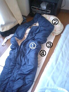 【昼ごはん】 くじらづくし、お酒いっぱい、お土産ココナッツケーキ、プリン+黒糖ソース 【晩ごはん】 2次会で飲み 【夜食】 たらことしそのパスタ 【今日の感想】 写真の説明 ①寝袋 ②くたくたになったボールクッション ③相方が使う某社の低反発マット(4万)のダンボール ④無印の低反発クッション