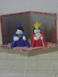今日の午前中、友達の家に行ってきました。 「もうすぐひなまつりやから、いっしょにお雛様作らへん?」と誘ってくれたんです。 友達の家に行ったら何人か来られていて、いっしょに紙粘土でお雛様を作ってきました。 見本を見ながら作ってみましたが、なぜかメタボお雛様になってしまいました。