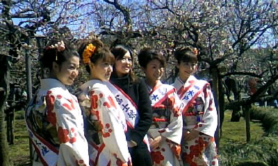 一番右のお姉さんでーす♪( ̄▼ ̄)v ↑なんで?着物なの? 観光客なのに、なぜ「水戸梅大使」?(笑)