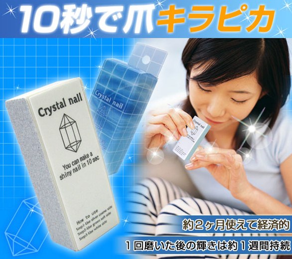 たった10秒で爪がピッカピカになる優れもの! 色々なTV番組でも紹介されて、大人気で品薄状態の商品らしい。 http://www.imonosenka.net/convenience/crystalnail/