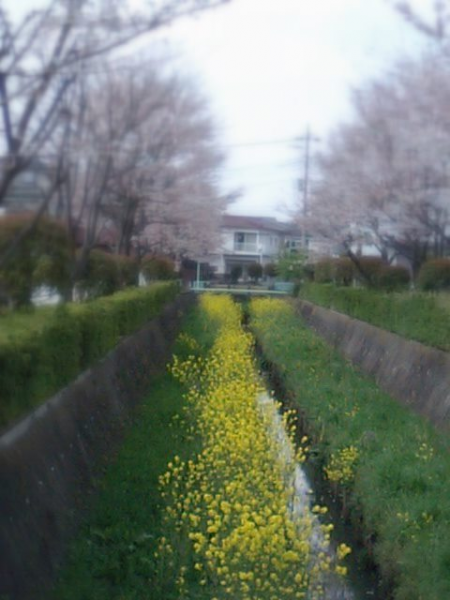 素敵な写真ですね☆ そして、とっても良い風景。 淡い桜色と、菜の花(ですよね?)の黄色、緑の草木。 その間を、どこまでも歩いていきたい気分♪ こちらは1日雨で、桜の花はもう終わりです。