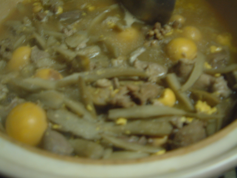 お義母さん直伝の鳥もつ鍋つくった!! とりもつとゴボウを料理酒で煮込んで軽く味付け。