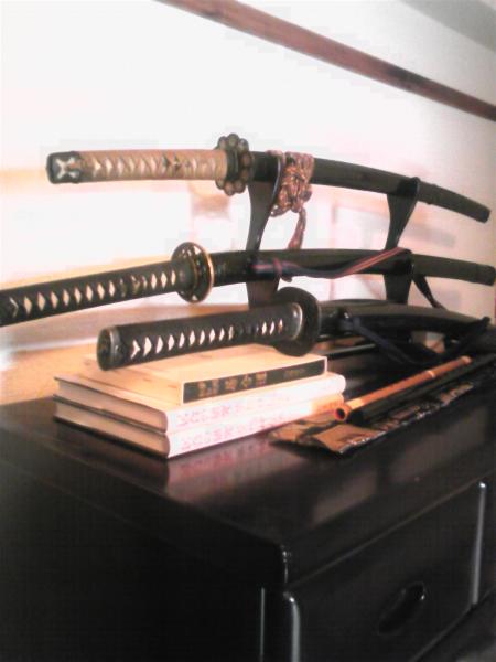 ① 表裏 銘あるも判読出来ず 長さ70.3cm 反り0.9cm 目釘弐個