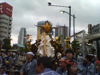 その後、南部(一之宮)の宮入渡御をしました。これも雷門から担ぎ出し蔵入りまで行いました。 徹夜で三社祭フルコース(宮出し〜宮入、南部、東部、西部の本社御輿を担ぐ事)で充実してまいした。 帰って一杯やりました。残念だったのがバッテリー切れで写メれなかったことです。(宮入りと蔵入り)(T_T)