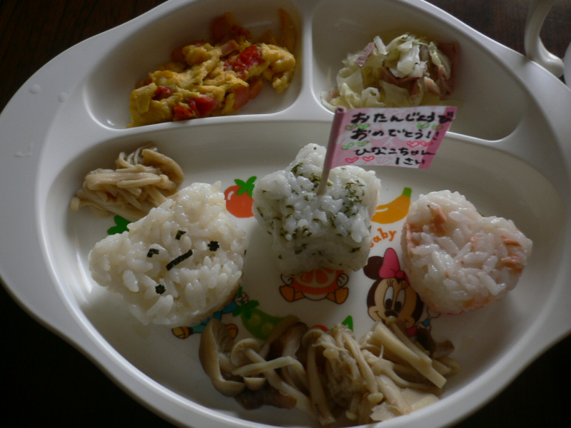 わぁ~、ぴよちゃん、お誕生日おめでとう!!!!! 何かほんと、1歳のお誕生日は感慨深いよねぇ。親も感動よねぇ。 で、1歳を目前にトコトコ歩いたなんて!すごいわ、ぴよちゃん☆ てゆうか、みっちゃんもスゴーイ! 何だ、このとってもかわいい3食のご飯は!かわいすぎる~~~♪ 私はこうゆうこと全くできない(やる気がない…)から尊敬するわ~~。 みっちゃんも、ママ1歳、おめでとう!おつかれさま! まだお互いママになって1年程度、失敗もわからないこともいろいろあるものです。 でも子どもと向き合って、一緒にいいママに成長して行こうね~☆