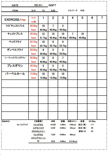 運動の記録 (5回)