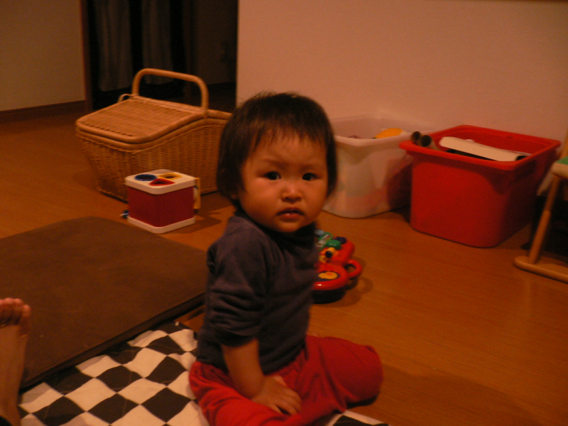 ---------------------------------------------------------------------- 【子どもの行動・できごと】 ぴよは昨夜はまとまって寝るものの、今朝は5時前には起きてしまう。 ベビーベッドでは寝れなくなったみたいで、リビングに一緒に来てゴロゴロするけど、 最近リビングざぶとんでも寝れなくなってきたようだ。 結局眠そうにはしているけど、6時過ぎには起きて遊び始めた。 わたしは昨夜1時過ぎまでおきていてしまい、眠い・・・。 ぴよが遊んでいる横でいつまでもゴロゴロしていた。 わたしがゴロゴロしている間は、とってもおりこうさんで横で一人で遊んでいたけど、起きるとしっかりとしがみついて離さない! やっぱりさびしかったんだ。あはは。 それにしてもおりこうさんいなったねー。ぴよなりに状況を理解して我慢しているところが。 感動だなぁ・・・。
