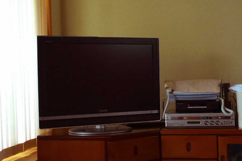テレビ、でっかーい! ブラウン管がなくなって、テレビはコンパクトになりましたねぇー。 奥様がお買い上げになったテレビ、こっそり殴る蹴るしちゃダメですよ。 見るときは毎回奥様にお伺い立ててから見るんですよ~。 うちも帰ったら買わなくちゃあ、テレビ・・・。