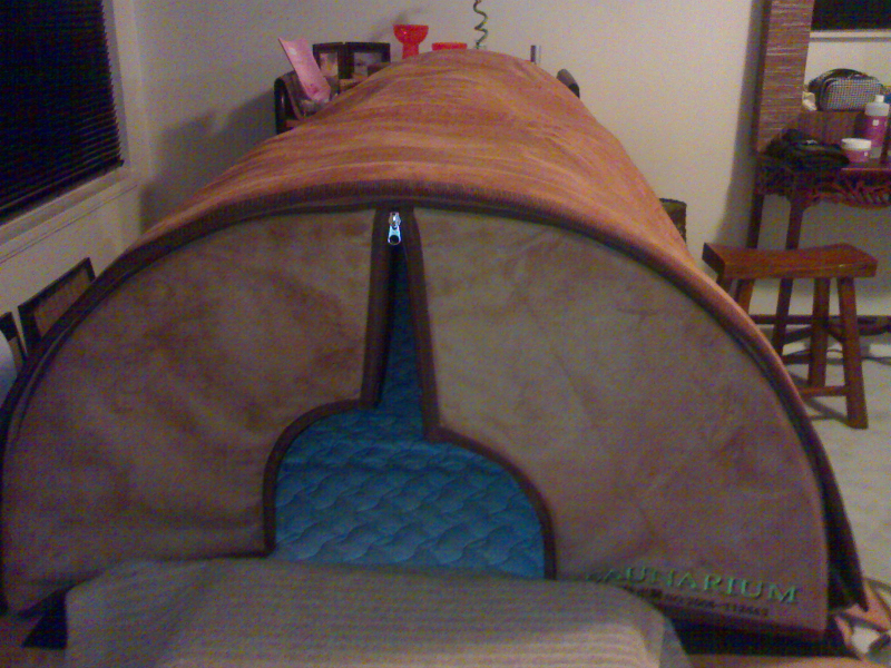 ゲルちゃんの効能を持った石が敷き詰められたマットの上に、遠赤外線放射ドームを かぶせて中に寝るんです。