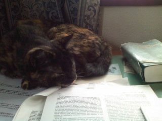 にゃんこの寝てる手の下に日本語の資料があったんですが 見事に阻止されて原文を「読めー!」と無言の圧力でした・・・ 一見、本当のまるこちゃんみたいになりました。 中身も近いかもな~^^