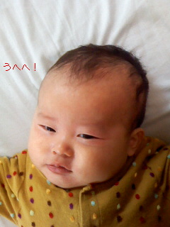 寝起きのときって、赤んぼはじつにいろんな表情を見せてくれるもので・・・ たまたまシャッターボタン押したときに、この顔になってたんだす。^^; 1枚目のアホヅラもそう。 抱っこをなるべくしないで済むようにと思うんだけど、やっぱ泣かれると切ないもんだからついつい抱いてしまう。。。