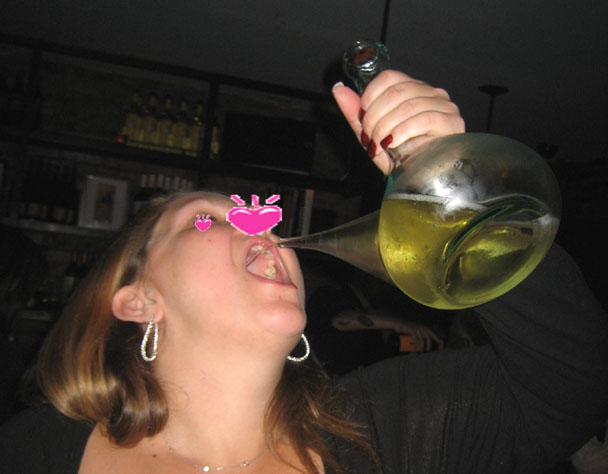 そんなこんなで、ショーの後モレママとハーレー野郎はご機嫌で電車に乗ってジャージーに向かい、 我々は飲みなおし。ふらっと行き着いたタパスバーで、 なんと思い出のひぃ~~~を発見! 前回東京に乗り込んだときは、これのおかげで翌日ひどい目にあったよな。 っということで、リベンジ?! 上の写真はモレちゃんがひぃ~~~にトライ中で~す。