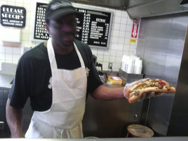 なんだよーっ、チーズステーキ、食べたくなるじゃんかー!! (って、ふったの自分だった!) やっぱ、うまいんだぁー。くぅ〜っ! ビールに合いそうだねー。(悪魔のささやき)