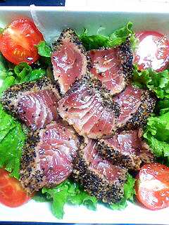 私はマグロが大好きなので、買ってそのままお刺身で食べちゃうことが多いんだけど、 たまにはこうやって、ひと手間加えて楽しむのもいいねえ。 大根のオードブルは、簡単だし、見た目きれいだし、ヘルシーだし、いいねー。 いろいろ応用できそうだし。