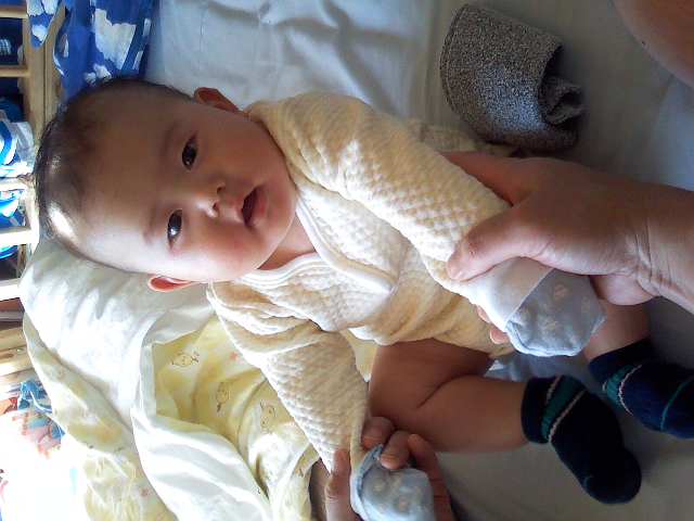 おむつ交換のときもジタバタするもんだから、足を上げた状態のときにテープを留めればいいのか、足を伸ばした状態のときにテープを留めればいいのかよくわからん。。。--;