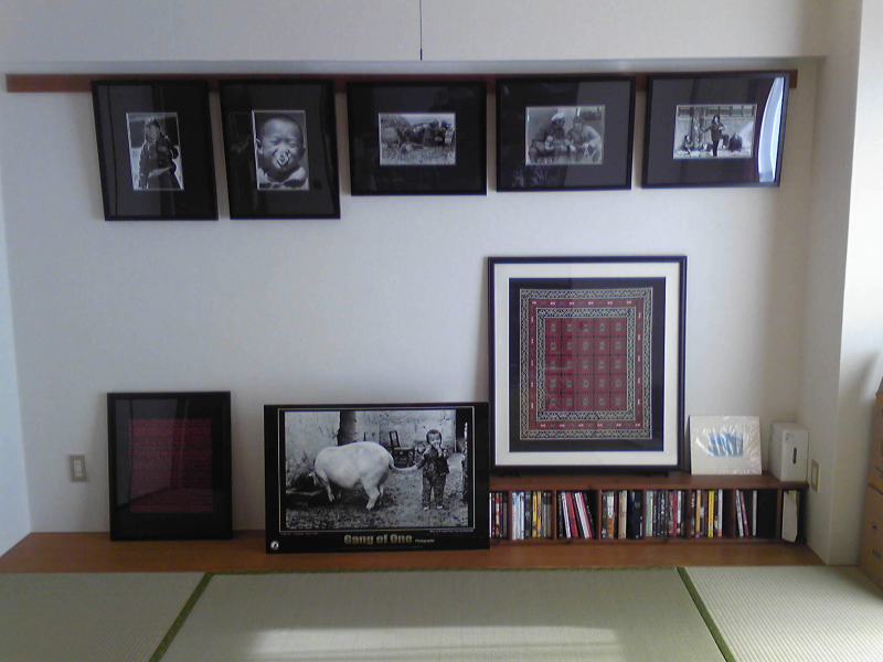 家に戻ると夫が大活躍してくれていました。 地震対策グッズを本棚と食器棚にしっかり設置、王剛鋒のポスターを貼るパネルの寸法を合わせ カッティング。そこからは協力してポスターを貼り付け、和室がますます王剛鋒色に染まります。 これまでに何度も何度も観て、細部にいたるまで覚えてしまうほどの写真ですが、飽きることなく 観てしまいます。ほとんど王剛鋒ミニギャラリー。ああ、幸せな空間。 こうしてパソコンを打っていても、首をひねれば写真がある。そのたびにニッコリしてしまうのです。