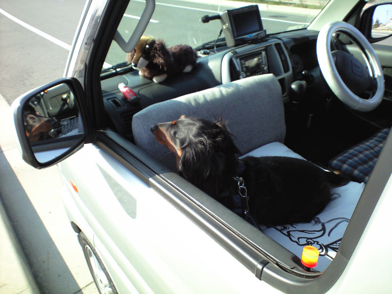 そうですね 今日も家族で一日中クルマで外出 RONもずっと一緒です。 買い物中は クルマで賢くお留守番しててくれます。RON用にクルマを いじってあります。