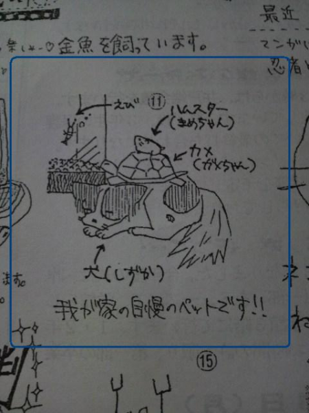クラスのメンバー紹介で、それぞれ好きな事とか、好きな物とか、 自分に関係するものを絵に描いたり、文字で表したりして、 それは誰?