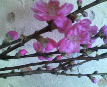 ももの❀を先日買ってきて飾ったのだけど、以外に難かしい(@_@;) これは、悪戦苦闘して撮った詐欺写メです・・・斜めに、下から~笑