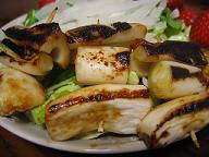 新作② もどき料理。 やきとり♪ ちくわ、エリンギ、ねぎ。焼き目を付けて、 焼肉のたれを掛けるだけ~。 これだけで、お味は、まさにやきとり!