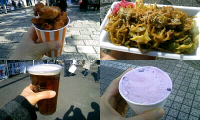これらをGetするために、0~20分は並ぶことになるけども、 たった100円で美味しい各地の料理を食べられるならば・・・