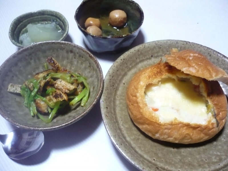 イカフライ丼も味噌汁もきゅうりも食べ切れなかったので、お昼に。