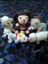 この前、買った本。 こんなの作ってみました。 おさるは他の本にもよくいるのですが・・ アルパカ・うし・ロバは珍しいかも?! あと一匹は、ひつじですよ。 どれがどれかわかる~?? いいの、いいの 不細工でもわが子はかわいいの♡