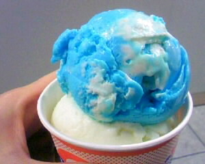 おめでとう!かんぱ~い! それにしても、今時は日本でもブルーの食べ物があるんだね。