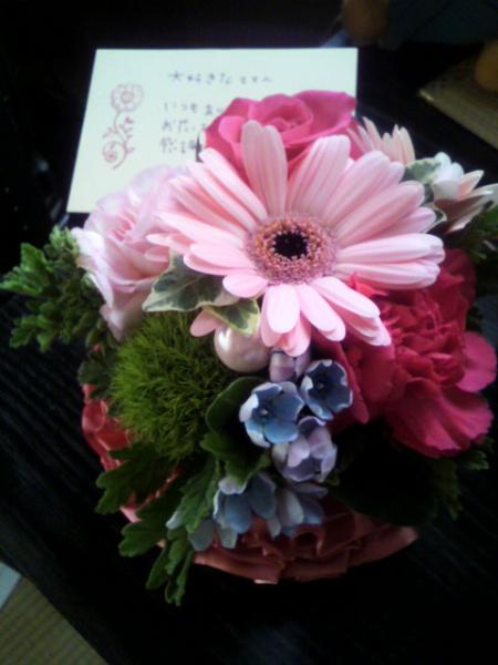 花と団子 だったらもっと嬉しかった?! いやいや、贅沢言ってはいけませんね。 はい。お花のプレゼントって嬉しいものです。