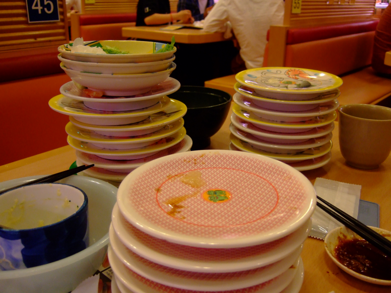 まわる寿司の皿は、家族の分も含んでるので、 実際には、写真に写ってる3分の2程度でしょうか? けど、 写真に写ってない皿と、うどんの器とデザートの皿も数枚もありますが(汗 家に帰ってマジで腹が痛かったヾ(T^T)