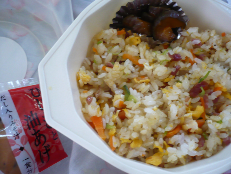お昼のチャーハンの具とつけ麺具は同じもの。
